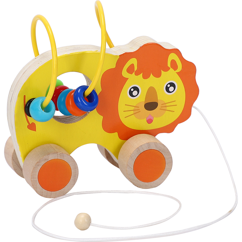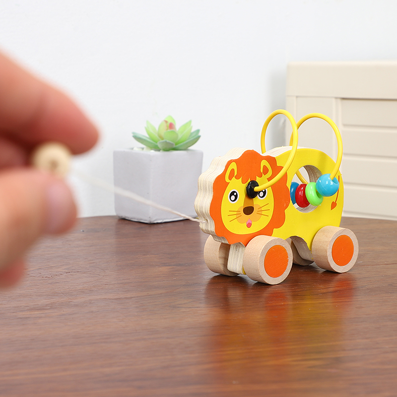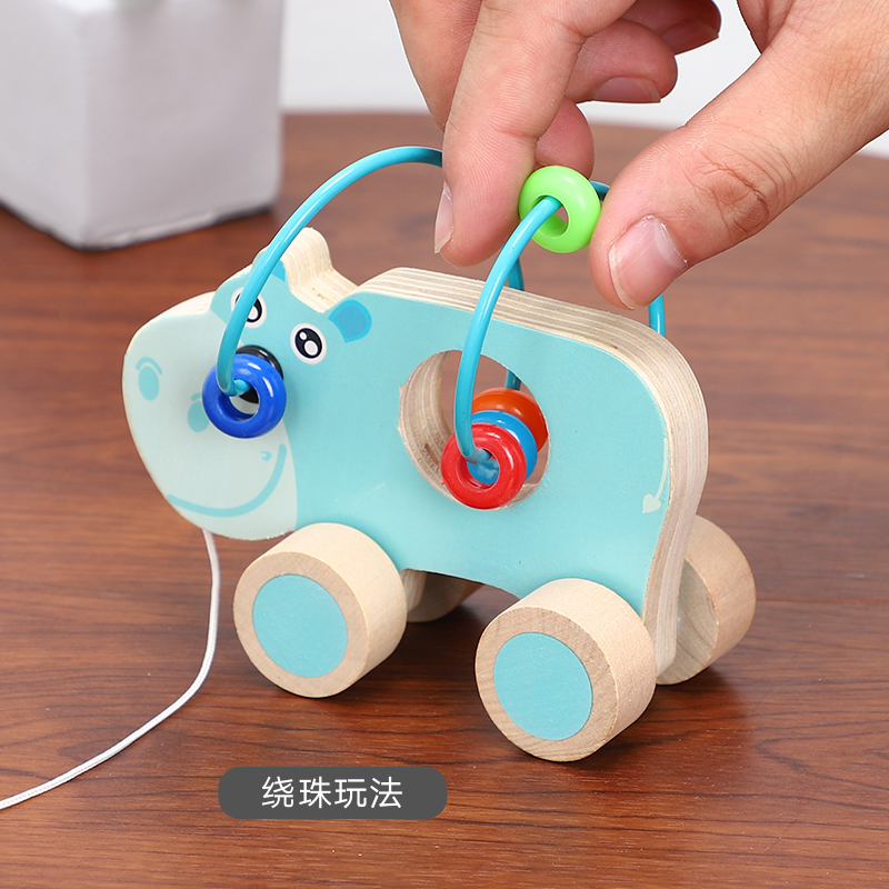 Wooden toddler toy animal pull cart children hand pull string pull rope small trailer cart baby baby nursery