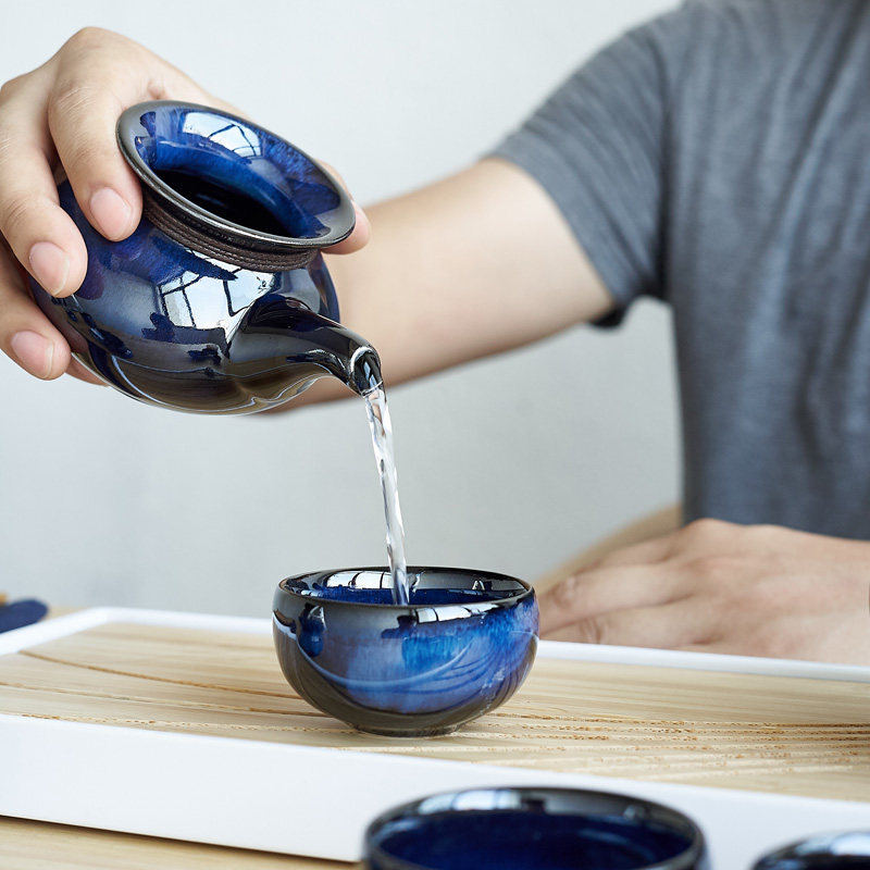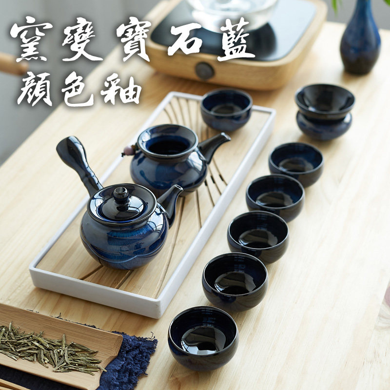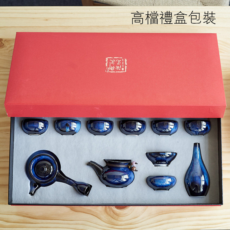 Kiln Change Blue Artisanal ceramic Gongfu Tea furniture set Set of Jingdezhen Home Chinese style tea cup Tea Cup Gift Box