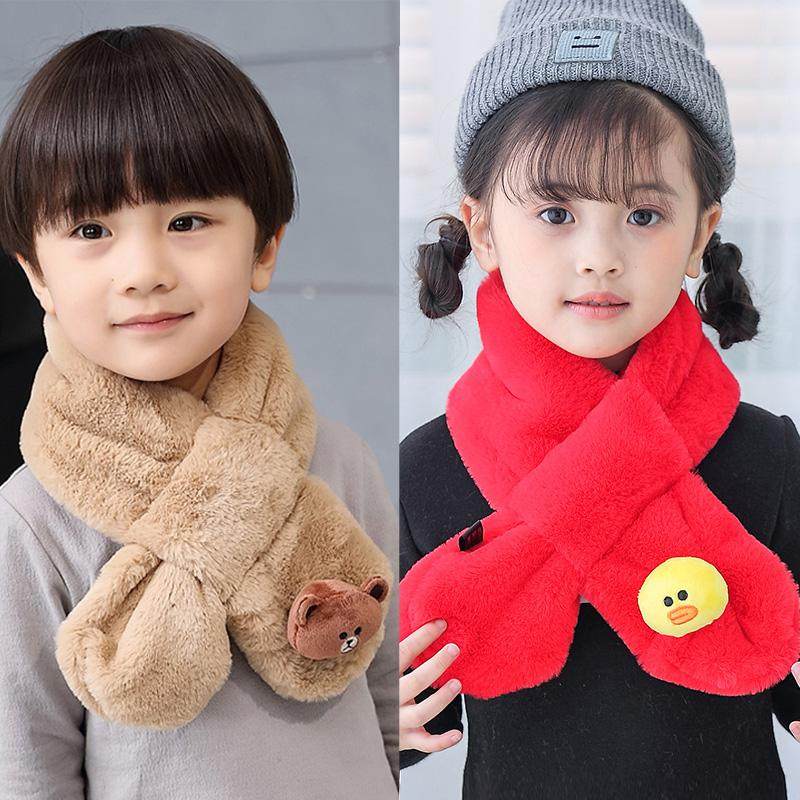 Toddler scarf female autumn and winter boy baby cute cartoon plush scarf baby child Korean version of the children's neck sleeve