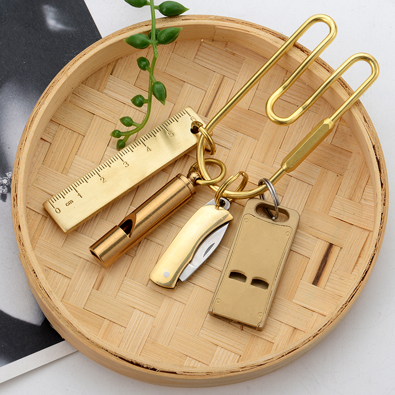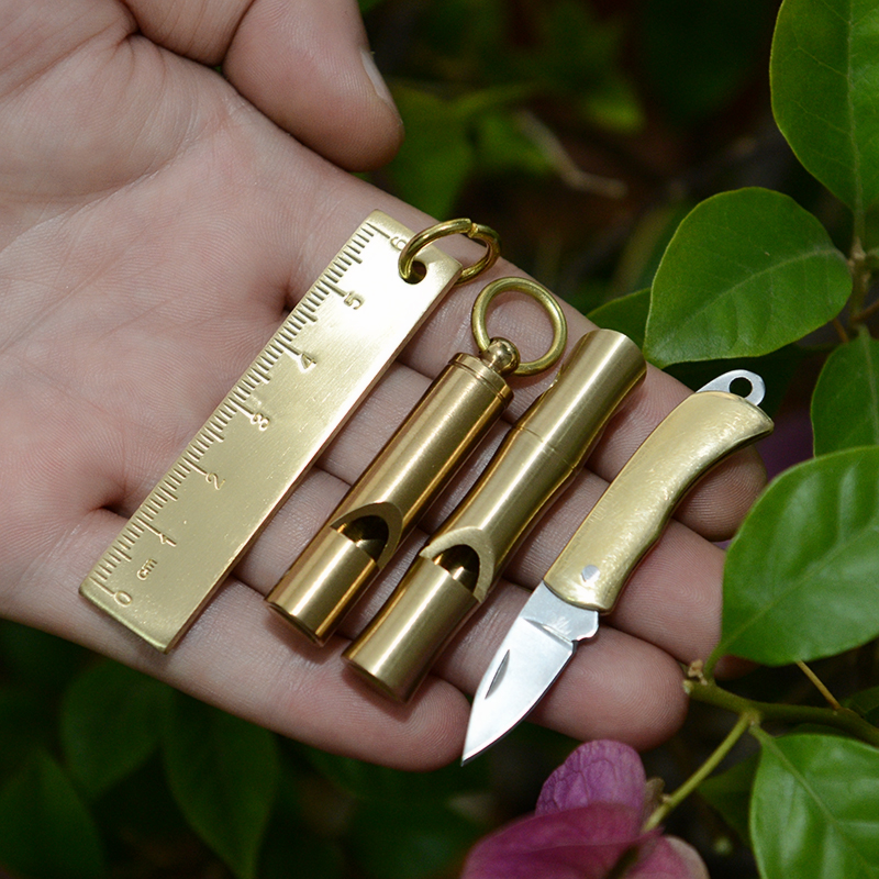 Brass 4CM small knife 1 brass 6CM small size 1 brass straight cylinder mouth whistle 1 brass double pipe mouth whistle send protective wrist brass hanging buckle three-in-one suit five-in-one suit