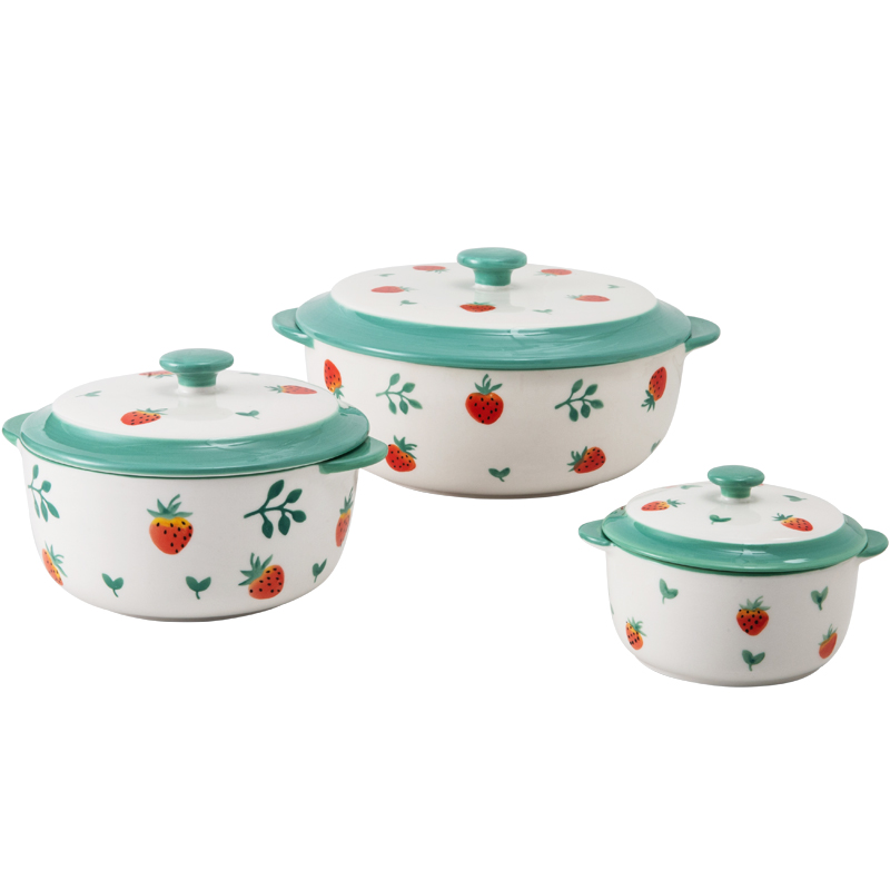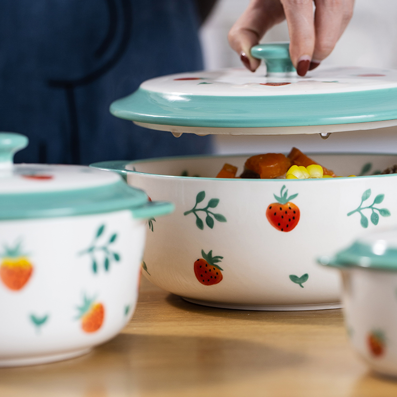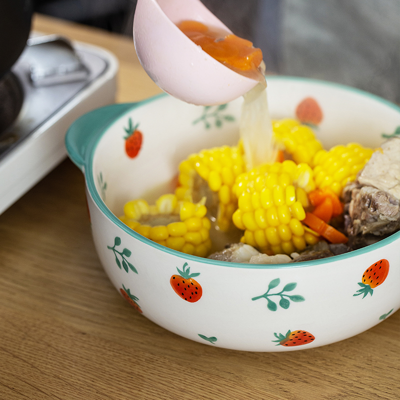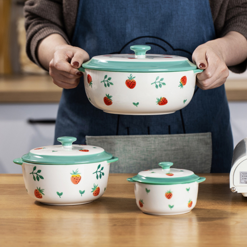 Mi Upright Wind Things Fresh Strawberry Twin Ear Soup Bowl With Lid Large Bubble Noodle Bowl Home Creative Personality Ceramic Big Soup Dish