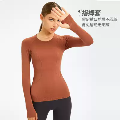 lulu spring and autumn round neck T-shirt seamless long-sleeved yoga suit female slimming gym sports running top female