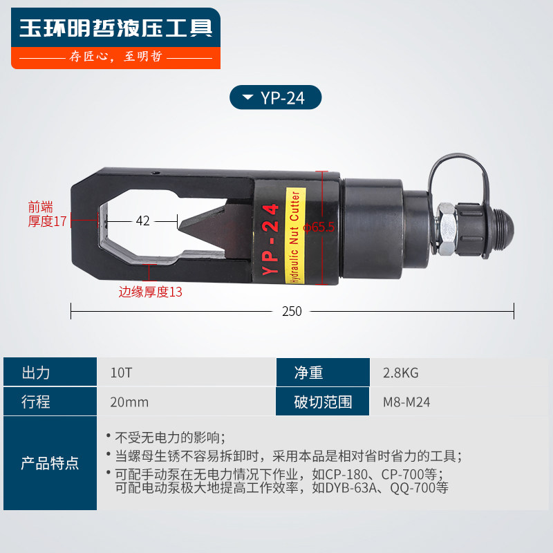Two-type hydraulic nut crunchers screw cap rust-cutting machine breaking out of the rusting screw cap YP-24