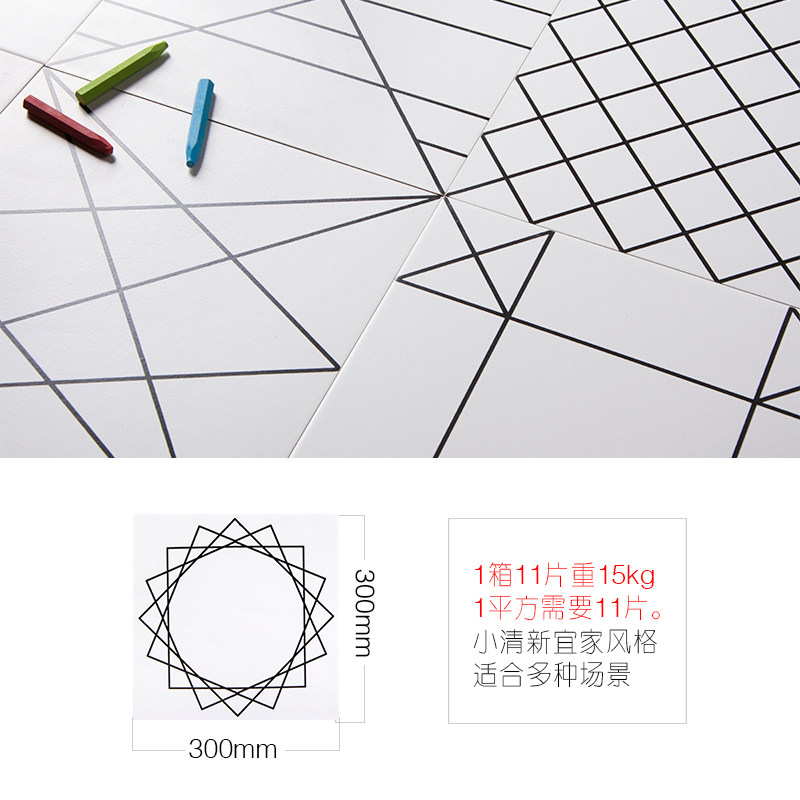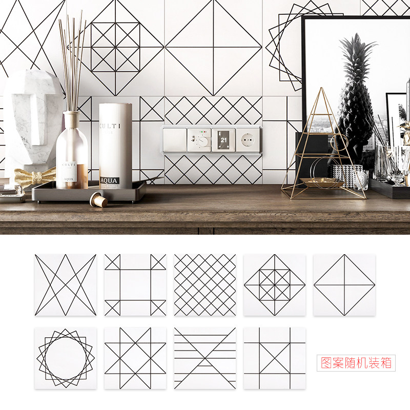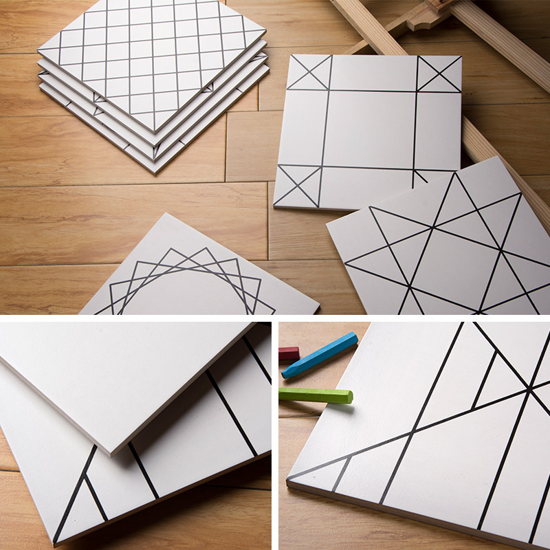 30x30 Nordic modern black and white tiles geometric lines Kitchen wall tiles Powder room floor tiles Balcony tiles flower pieces