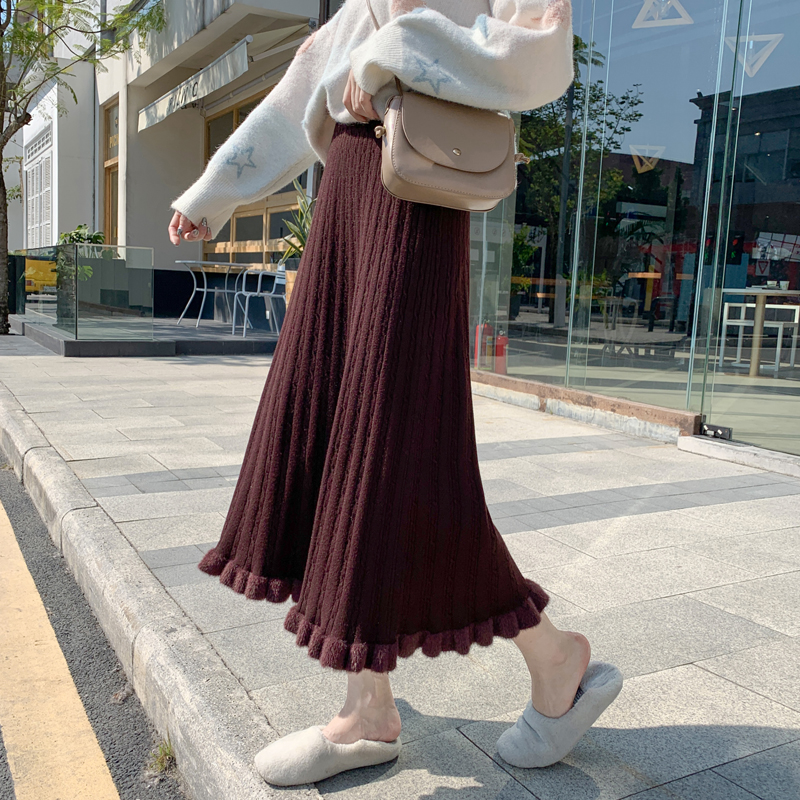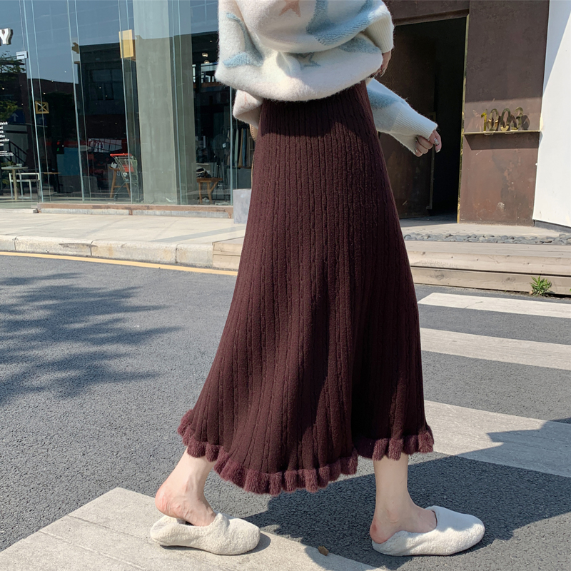 Knitted Skirt Women's Winter Skirt 2022 New High Waist Mid-length Thick Wool Hip Skirt Pleated Long Skirt