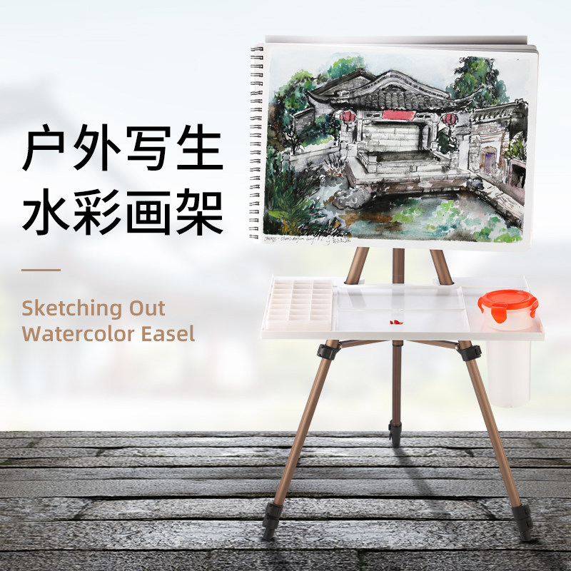 Watercolor painting frame Student sketching set Multi-functional out sketching frame Portable aluminum alloy triangle telescopic adjustable support frame folding lifting sketch adult display shelf Painting easel