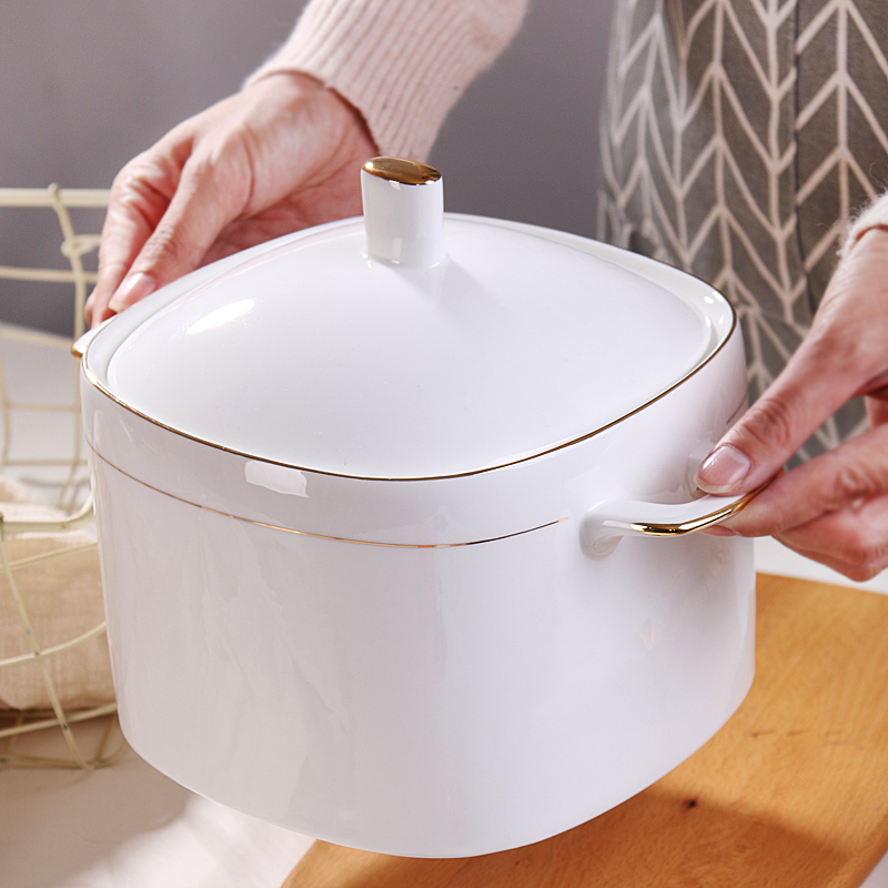Sedum Alloy Sideband Cover Bowl Public Stockpot Domestic Double Ear Large Bowl Large Horn Porcelain Soup Bowl palace Pot Ceramic Pans