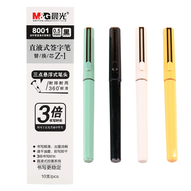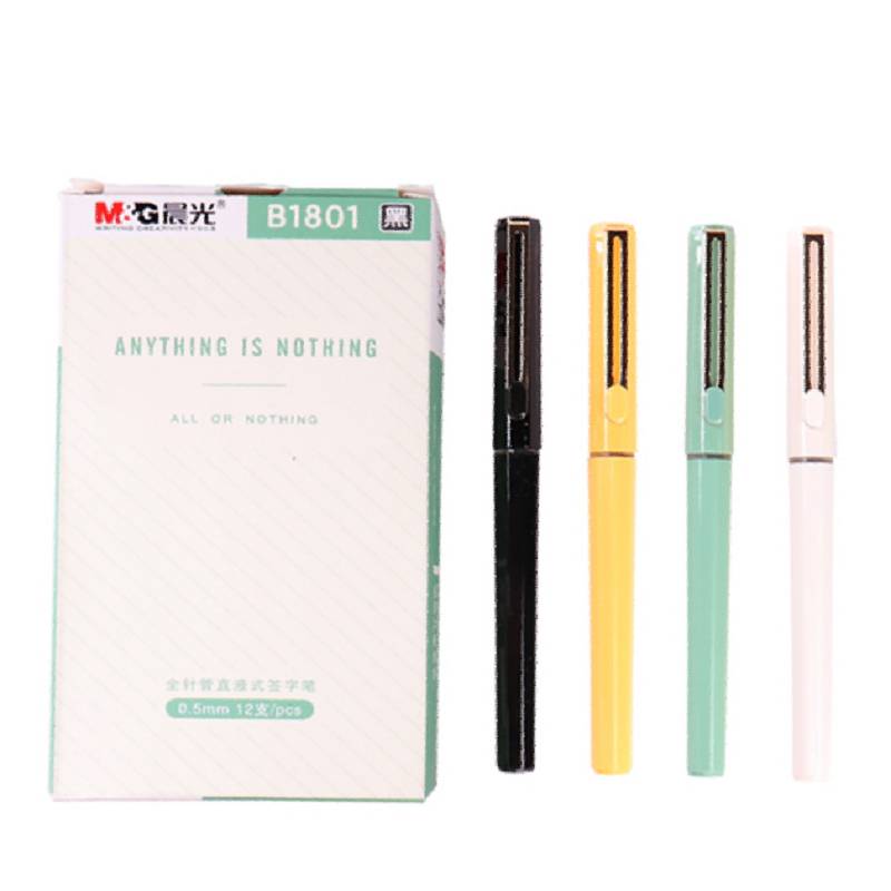 Morning light stationery full needle tube Straight-liquid signature pen 0 5mm Student exam Water use Ballpoint Pen Office Water-based Ballpoint Pen First Color Series B1801 Black