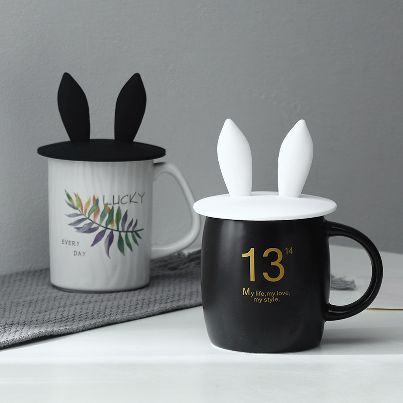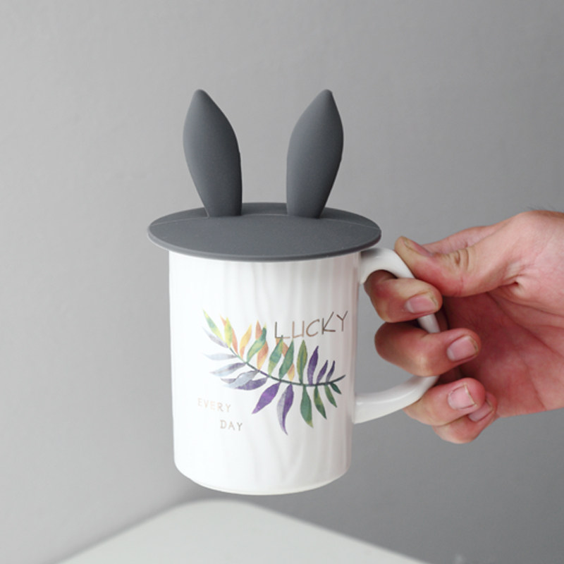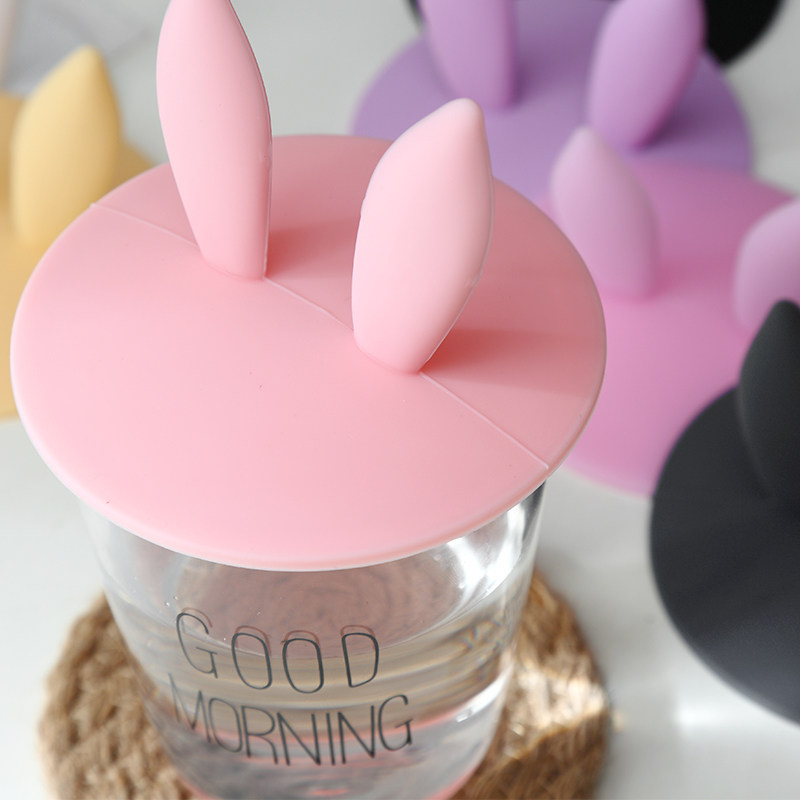 Food grade silicone dustproof leakproof creative cup lid Cartoon cat ear Rabbit ear Mark Glass cup lid