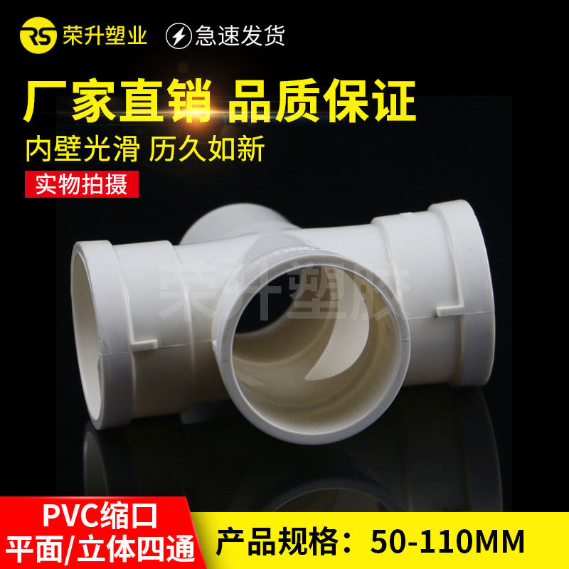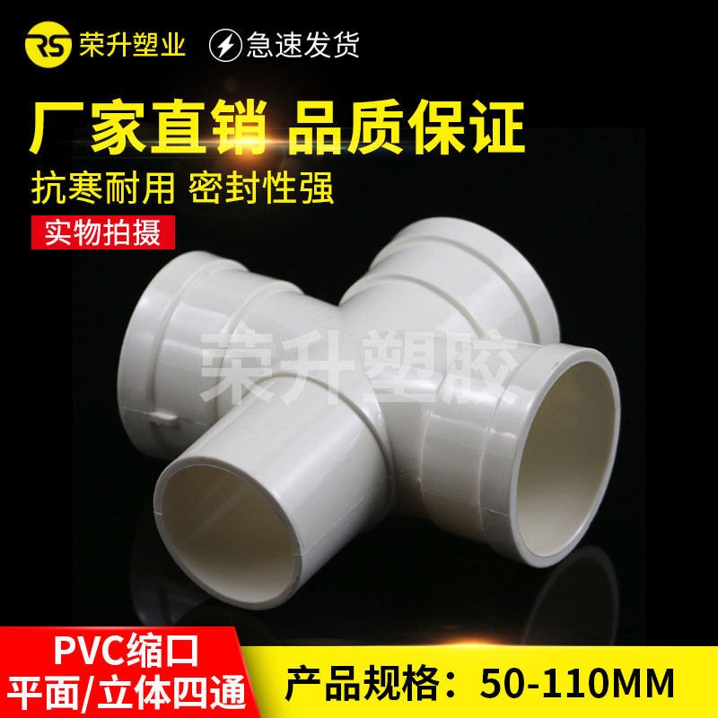 PVC brand new material drainage Rain water pipe fittings Lower-shrink solid four-way inner straight inserts 50110m m