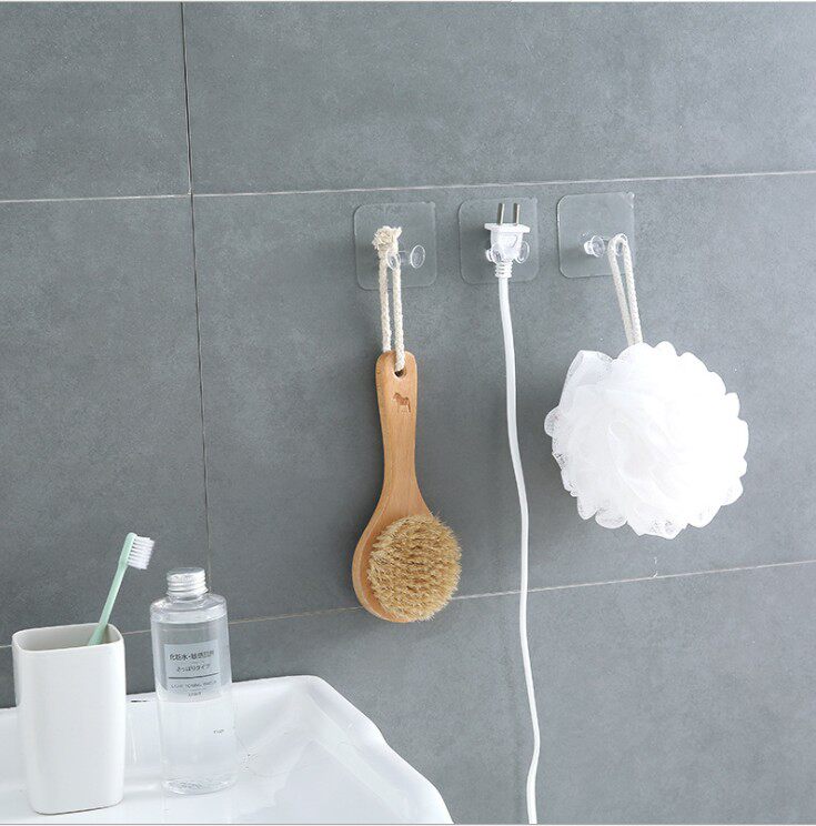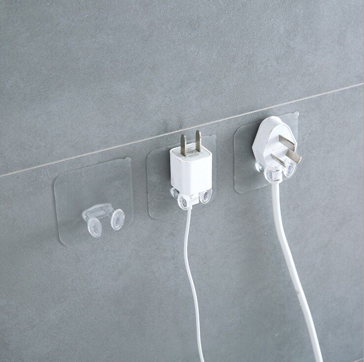 Transparent Plug Hook Plastic No-Mark Powerful Power Head Slime Hook Socket Wire Free Punch Holder Bathroom Slime Hook
