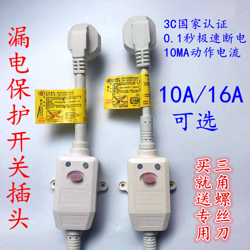 Universal electric water heater 10A16A anti-leakage protection plug weak current socket switch air conditioning power cord original
