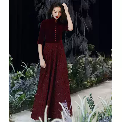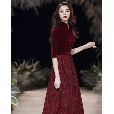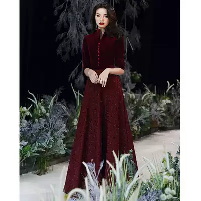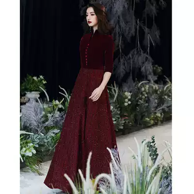 Burgundy toast bride 2021 new wedding dress high-end temperament long version engagement dress back