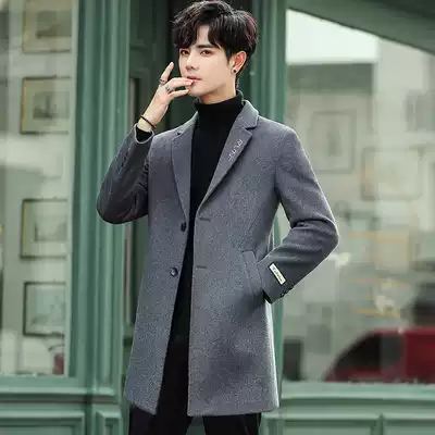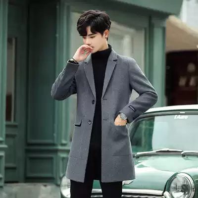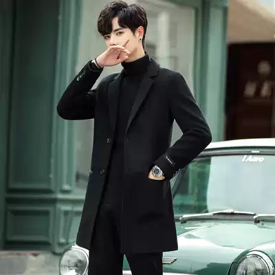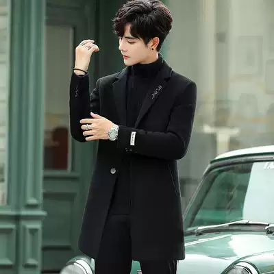 2021 New woolen coat men's long version of cashmere trench coat Korean version slim trend thickened woolen coat
