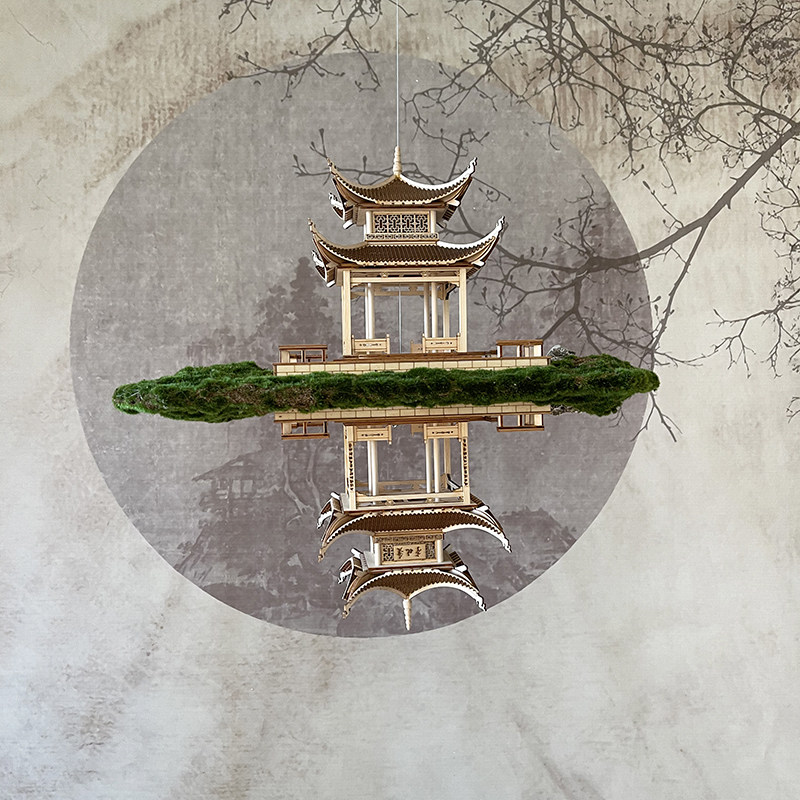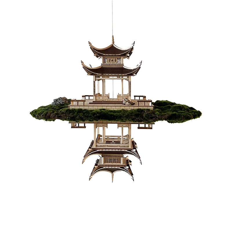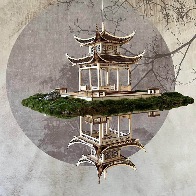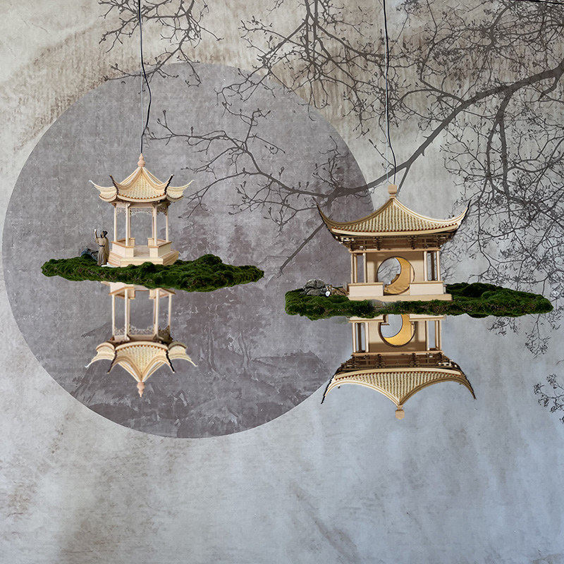 Pine tree reflection Love night mirror (without lights) Love night mirror with lights (without dolls)Li Bai on the moon two people play chess drunk new small Lanting (all solid wood) New large four corners pavilion (all solid wood)