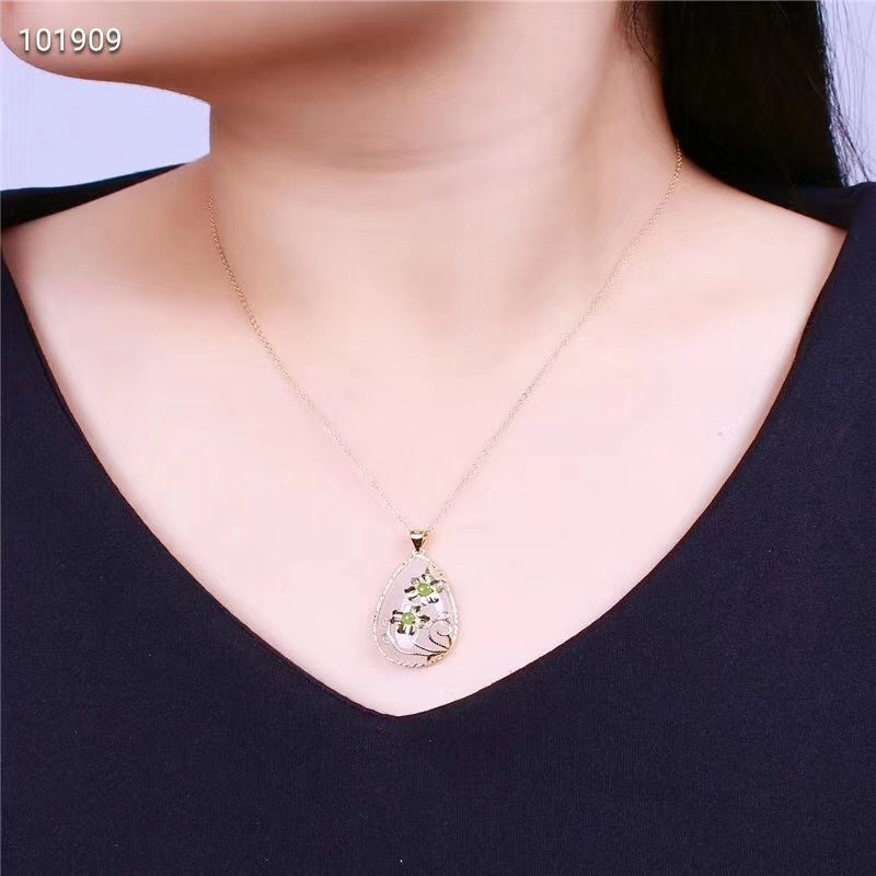 Xinjiang Hetian Jade sheep fat jade gold inlaid jade pendant s925 silver water drop pendant