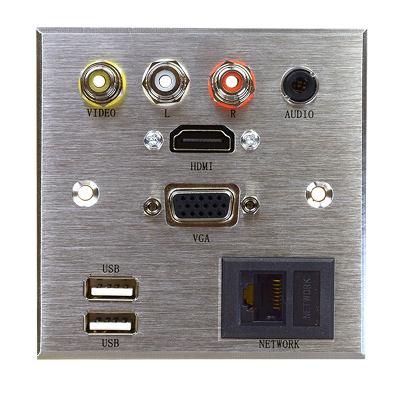 86 type power switch multimedia socket panel VGA embedded wall HDMI multi-function aluminum alloy customization