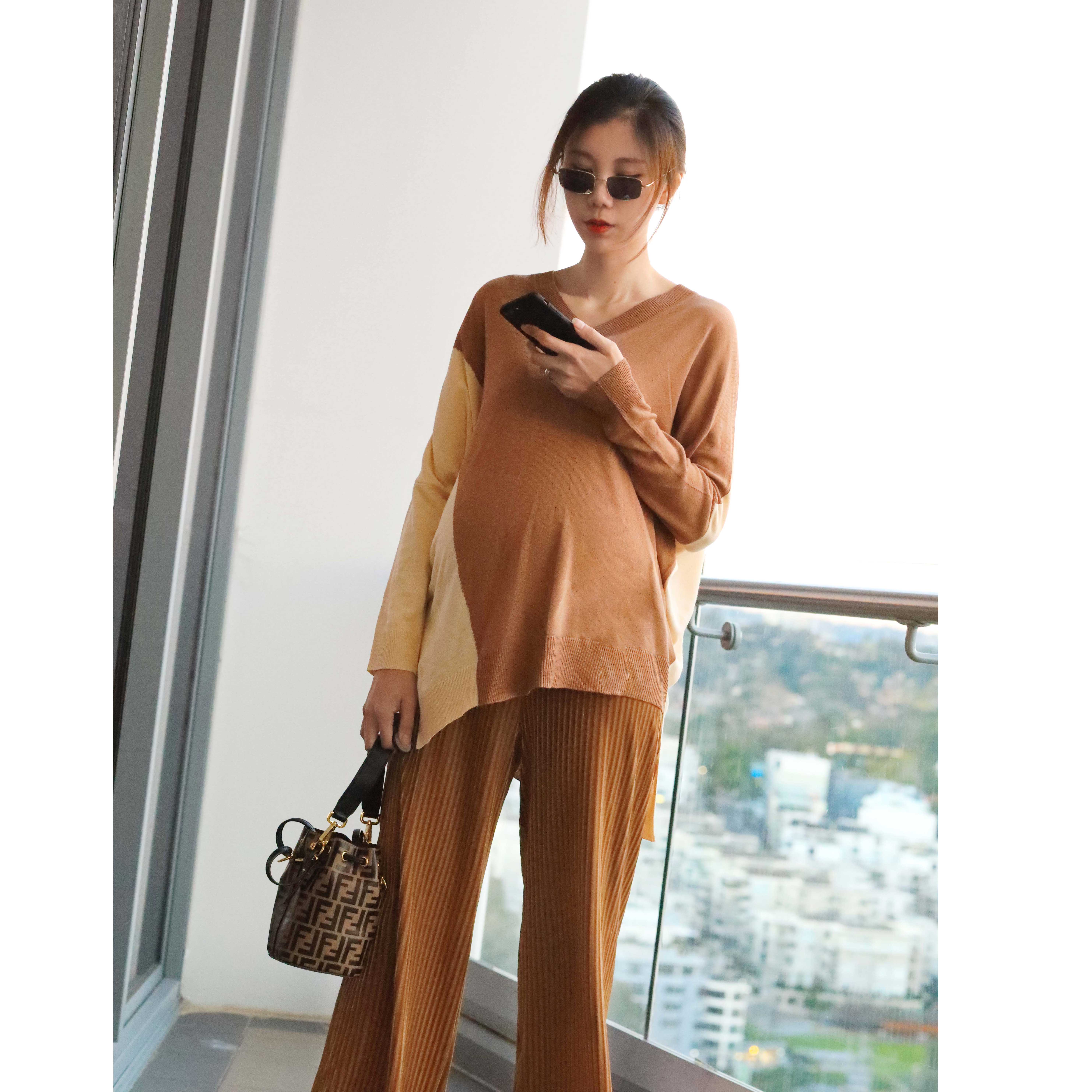 LAMMA。 Breathe. Natural original wool design maternity tops knit irregular v-neck leggings