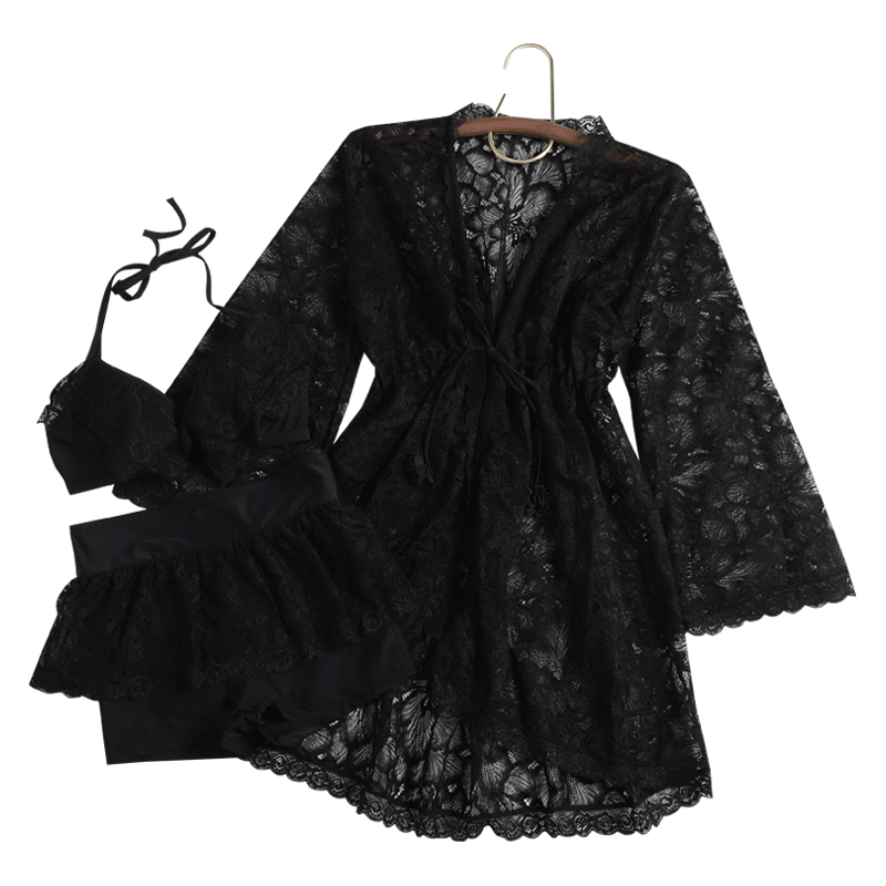 Swimsuit Woman Two-piece Flat Angle Sexy Lace Sunscreen Beach Hooded Sweatshirt New Holiday Spa Bikini Three Sets