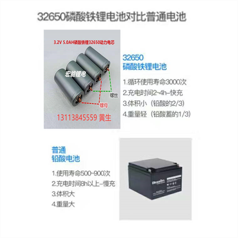 Watma brand new 32650 lithium iron phosphate rechargeable battery 3 2V foot pressure consistent (male head screw head)