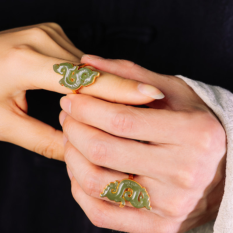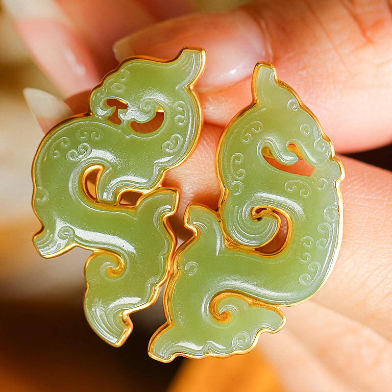 Tibetan ring ancient jade original antique and field Yuanyu Wooden River Grinding Seeds war Han Longgrain Fengpei Valentine's Day Golden inlaid pendant