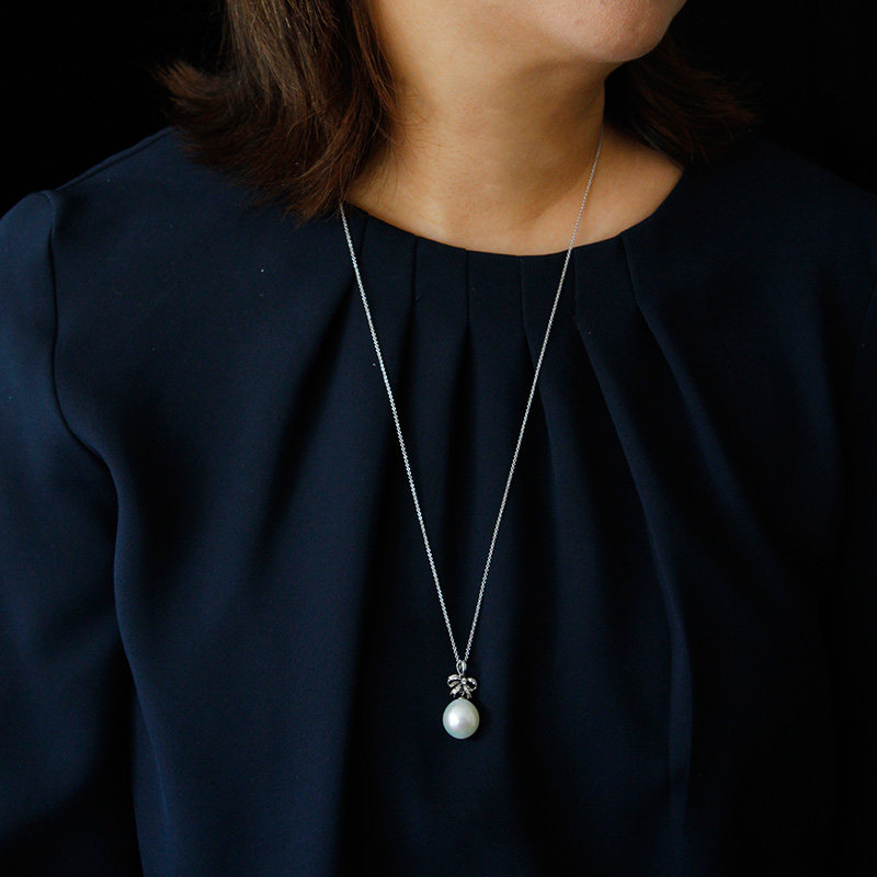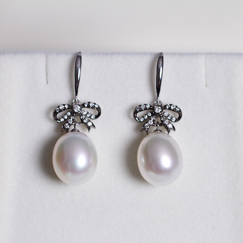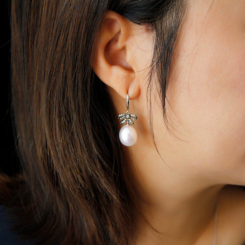 Paspaley Australia white pearl drop egg - shaped pearl 18k black gold butterfly diamond earring pendant inlaid
