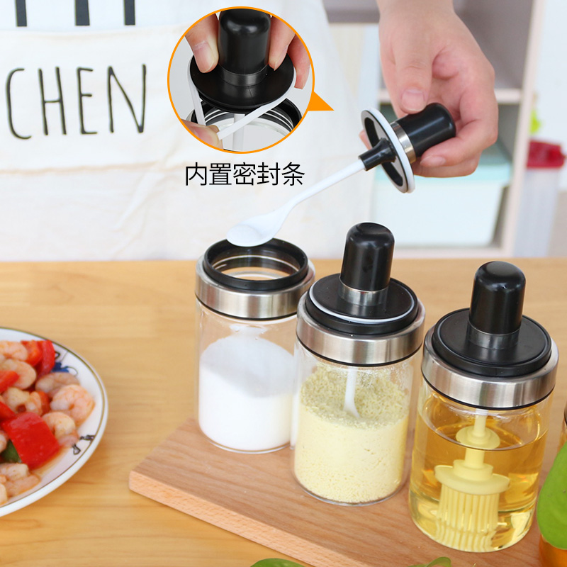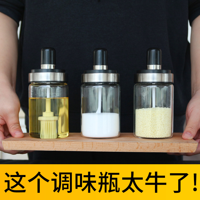 Seasoning box Glass moisture-proof kitchen supplies Seasoning jar Household sealed seasoning bottle Oil pot Salt tank Sugar monosodium glutamate bottle