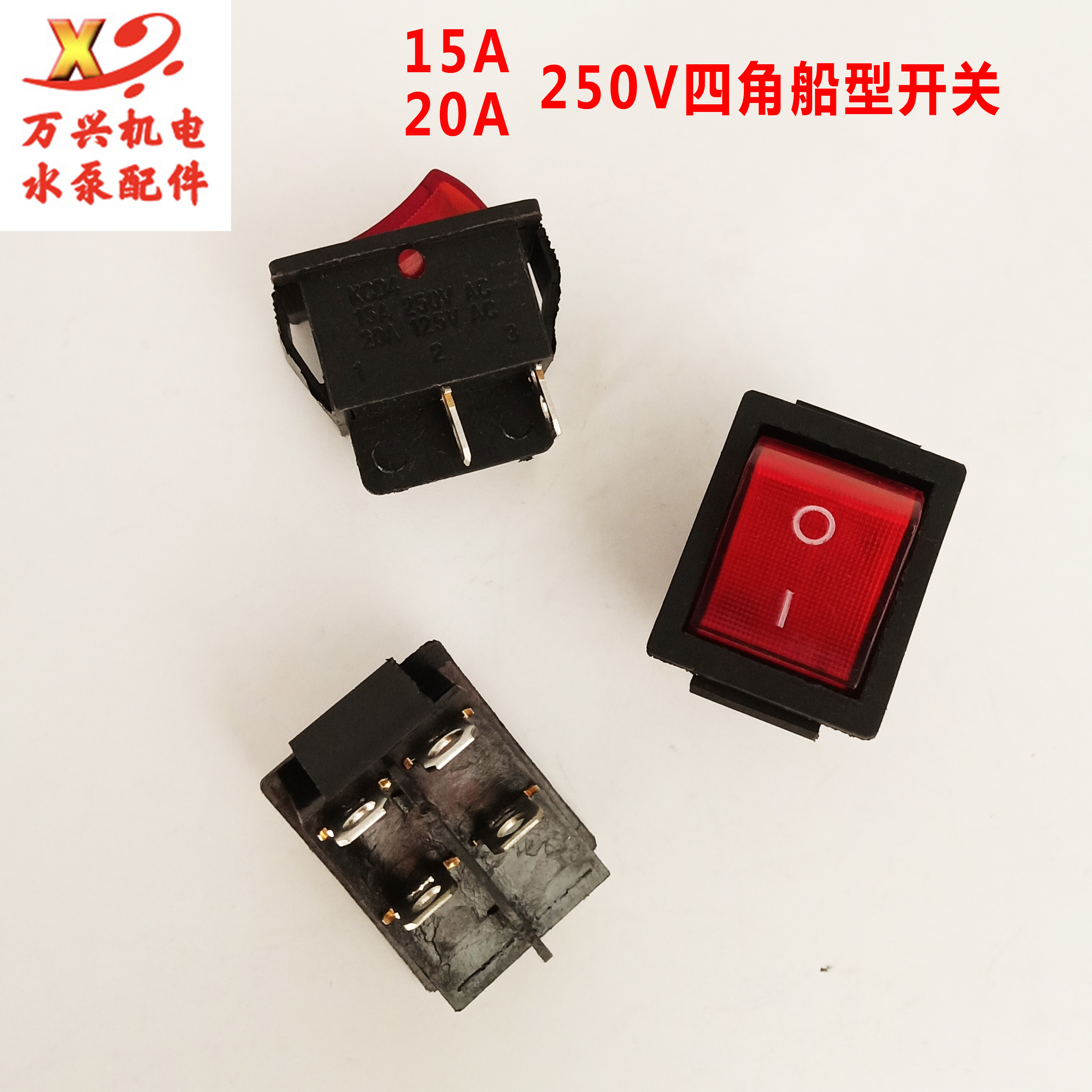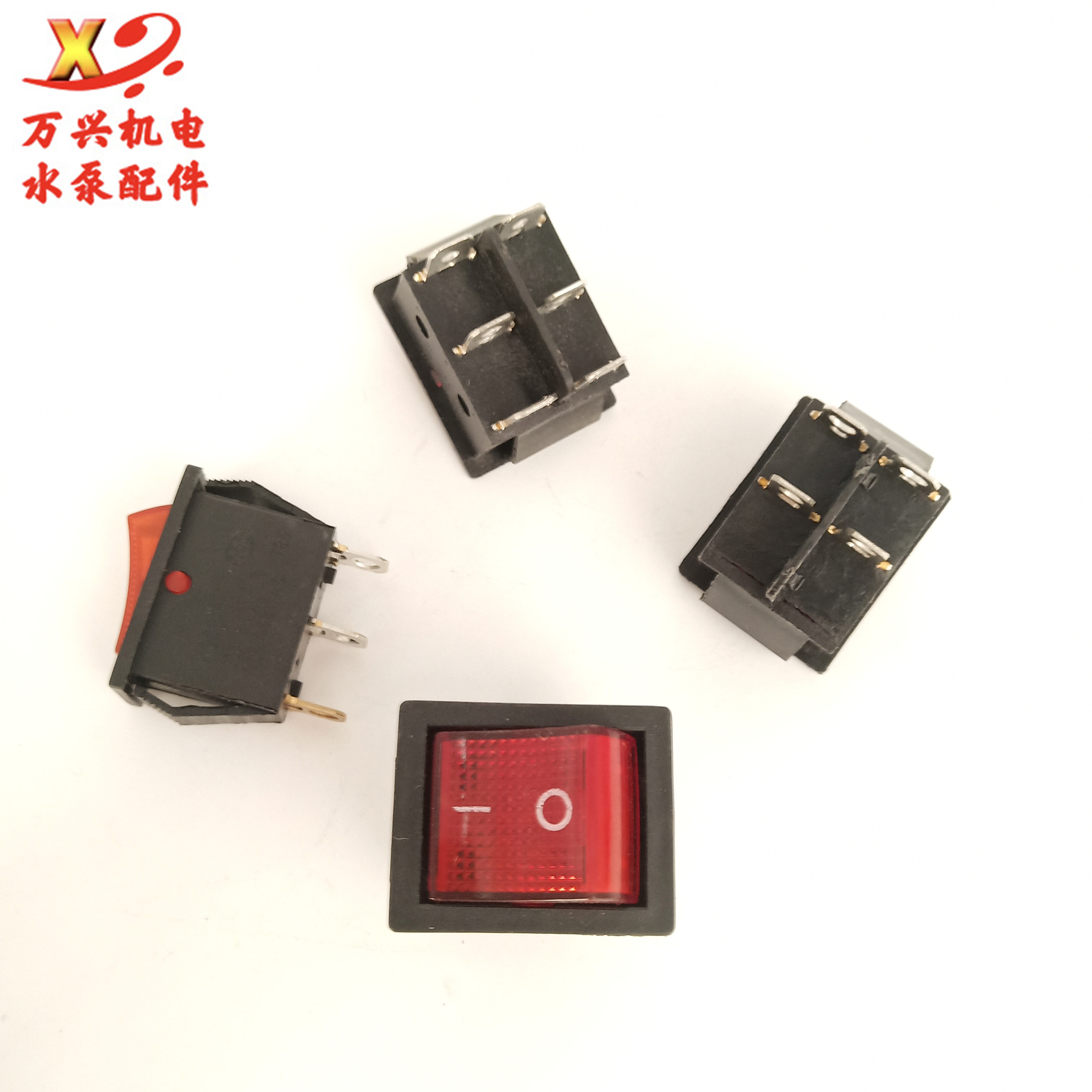 KCD4-201 teething switch with light power 4 feet 2 gear copper feet silver dot red button high power 16A 250V