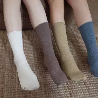 Autumn and winter simple pure color ladies bubble socks curled side socks students stockings cotton socks