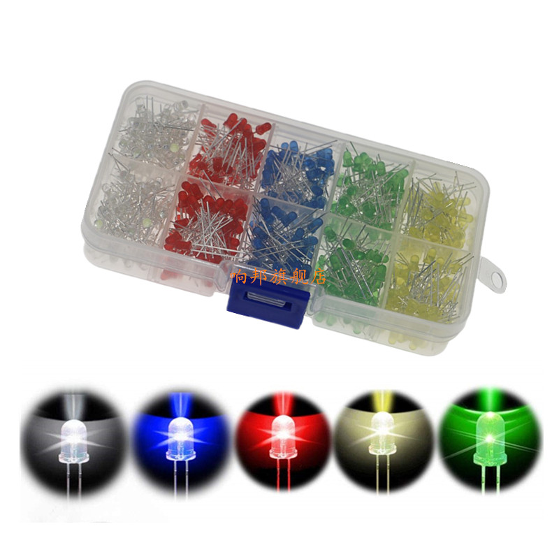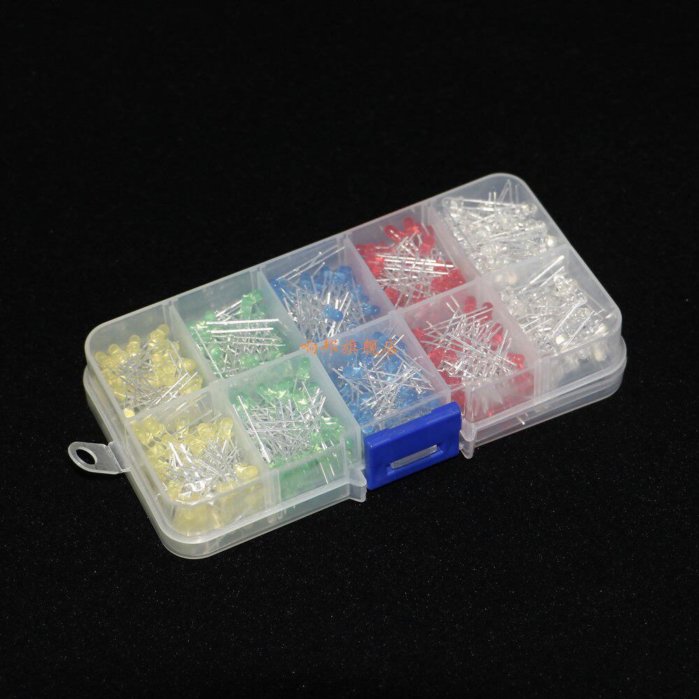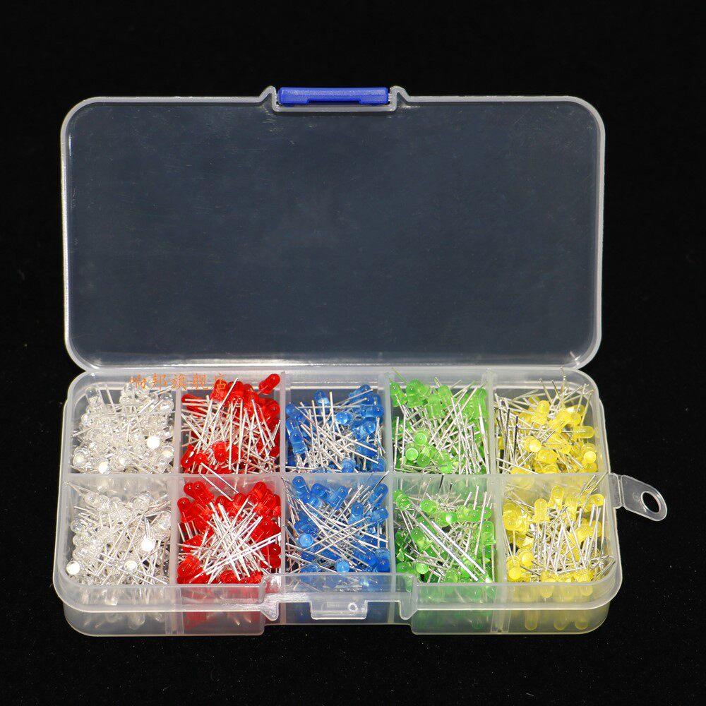 3mm LED light emitting diode boxed transistor 500pcs 100pcs per color