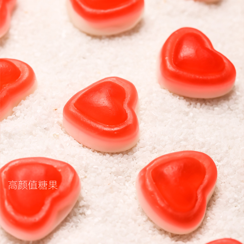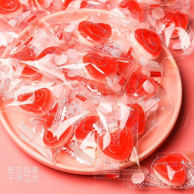 Happy candy bulk high-end heart-shaped gum candy fruit juice 500g red wedding wedding candy