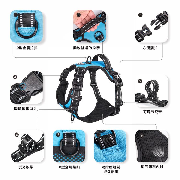 Four buckles are convenient to wear small, medium and large dogs Oxford cloth pet traction walking dog rope chest hug baby bag vest sandwich