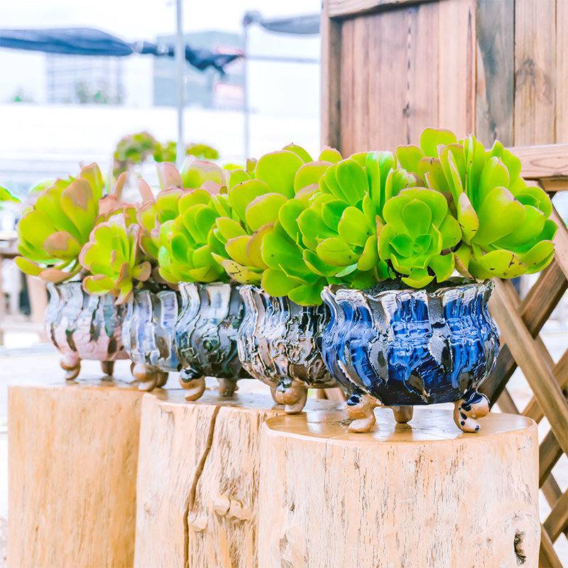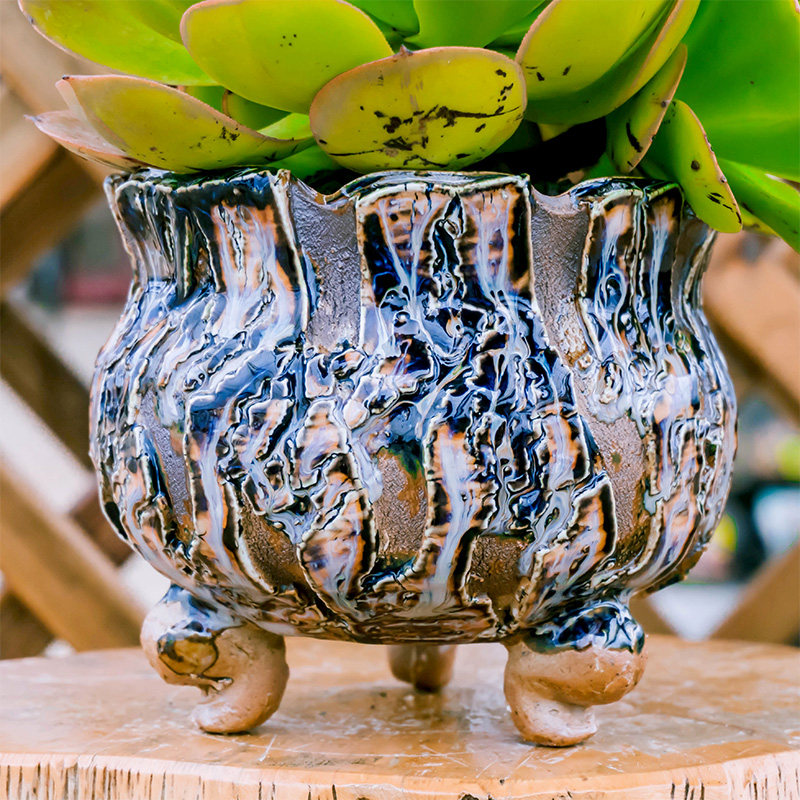 (Bang Yong Shangpin)Frog leg large burst flower pot Dongyun ebony flower pot Flow glaze large fleshy flower pot Coarse pottery
