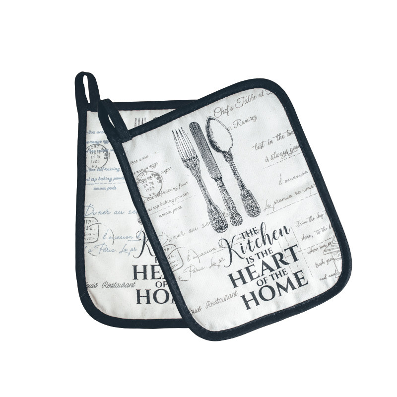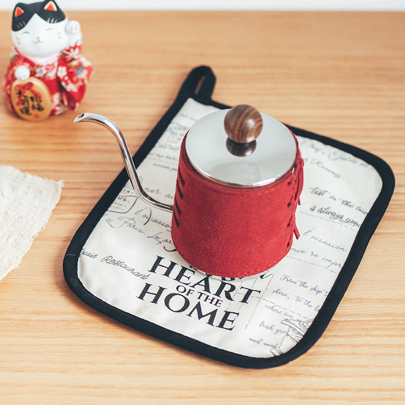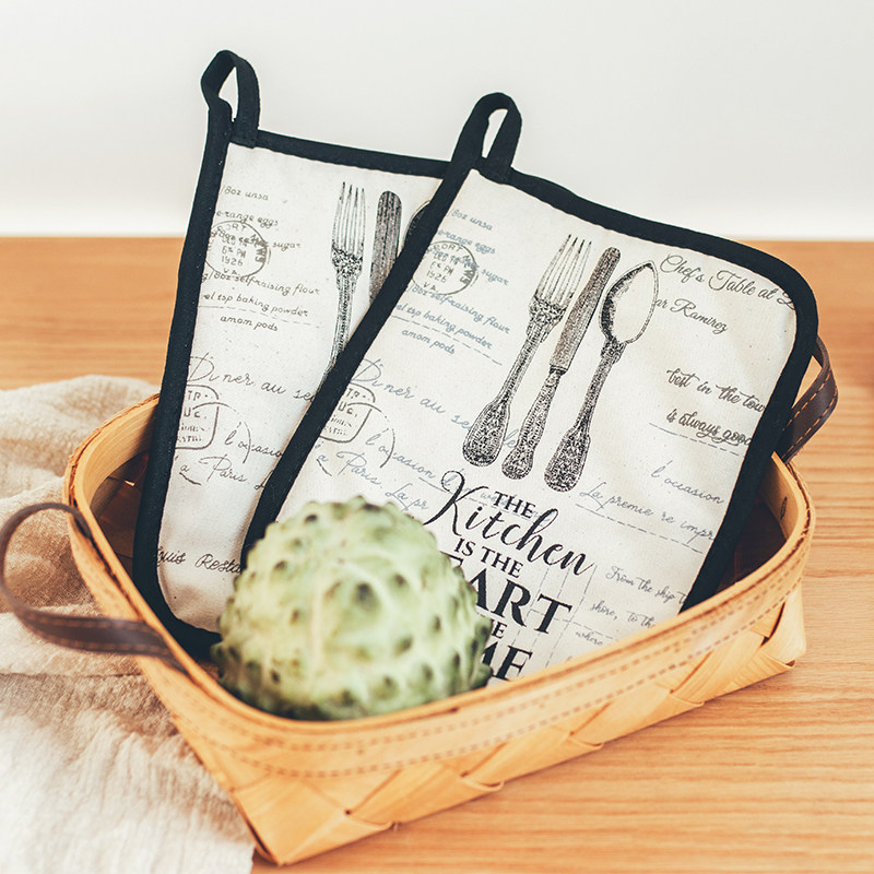 Nordic retro wind insulation high temperature resistant and burn-proof pure cotton canvas oven pan heat insulation mat microwave oven glove pair