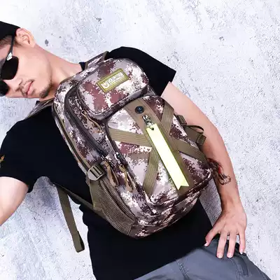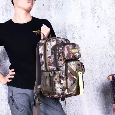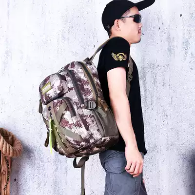 Outdoor double shoulder bag men waterproof nylon mountaineering Travel large capacity multi-layer pocket canvas camouflage Tide brand camping