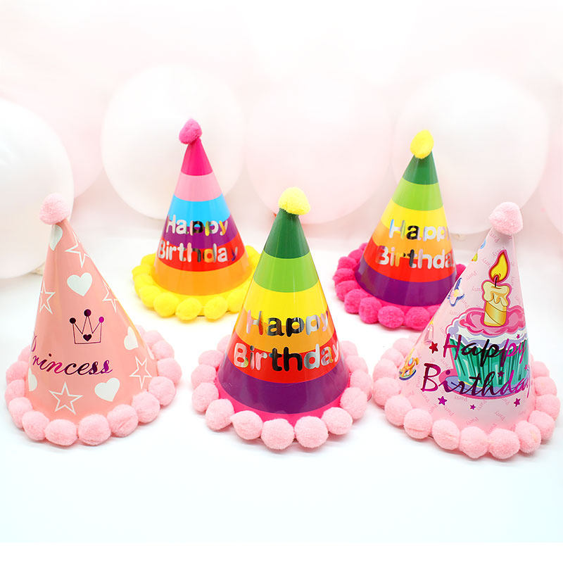 Children's birthday party hat Birthday supplies Round ball polka dot hat Baby birthday party hat decoration pointed hat