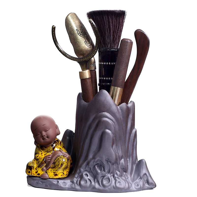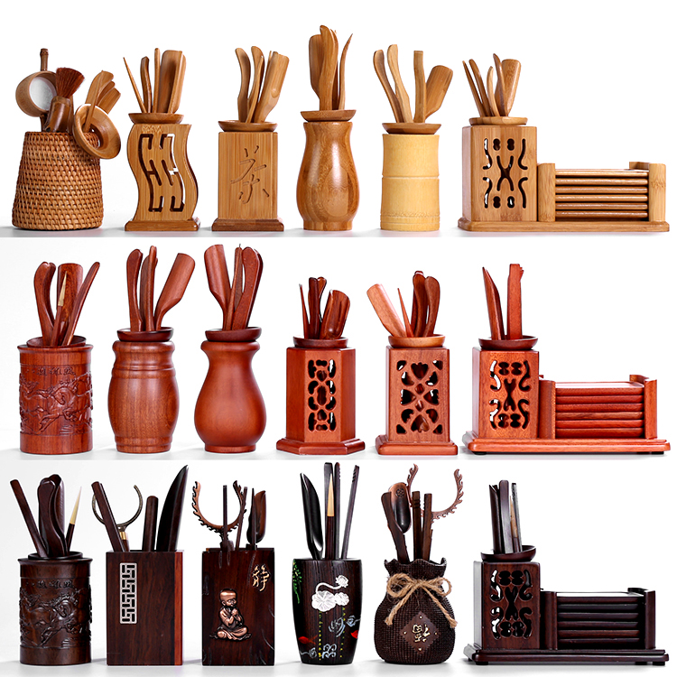 Ebony five-piece carbonized bamboo tea set Tea clip Tea needle Tea spoon Tea towel raising pot pen Kung Fu tea path matching pieces