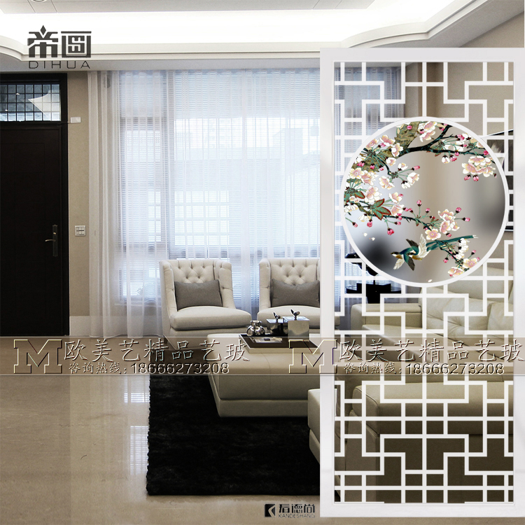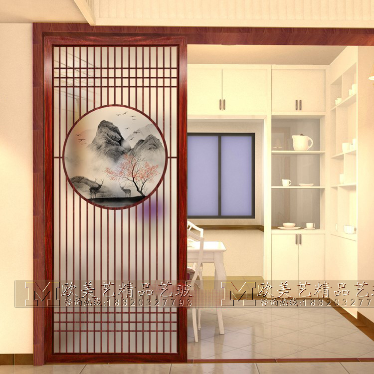 Art craft glass screen partition living room modern new Chinese transparent dry and wet area separation entrance entrance wall