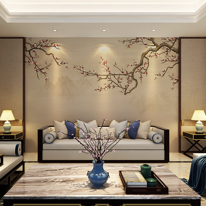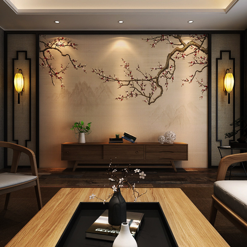 TV background wall integrated board Chinese style living room film and television wall wall panel ancient style plum blossom wallpaper custom fiberboard