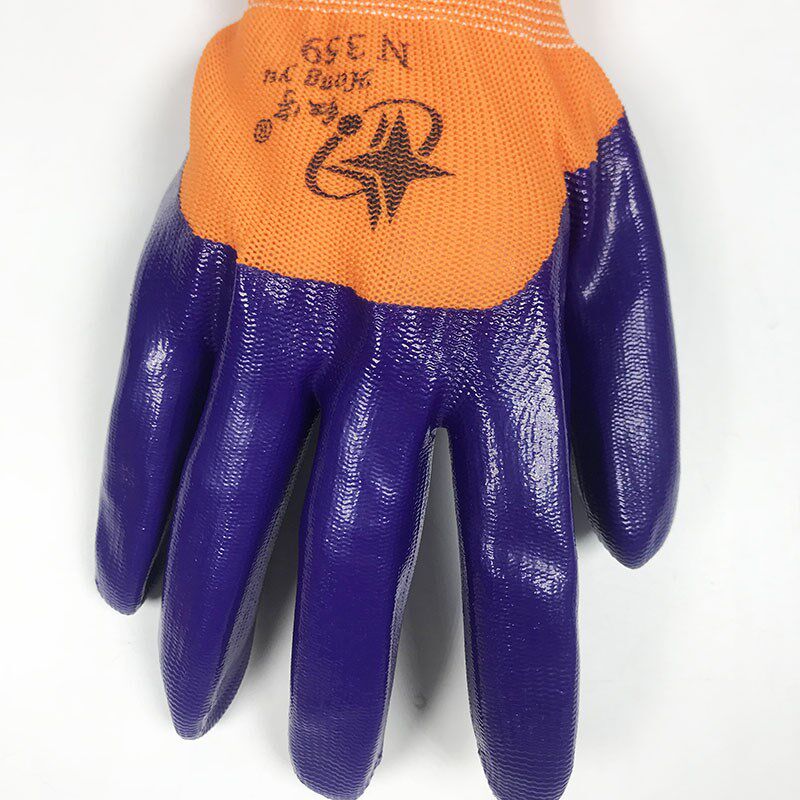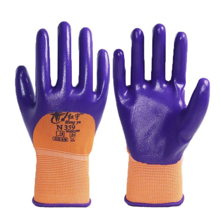 Xingyu labor insurance gloves Hongyu N359 protective nitrile latex semi-dipped wear-resistant breathable non-slip anti-oil gloves thin section