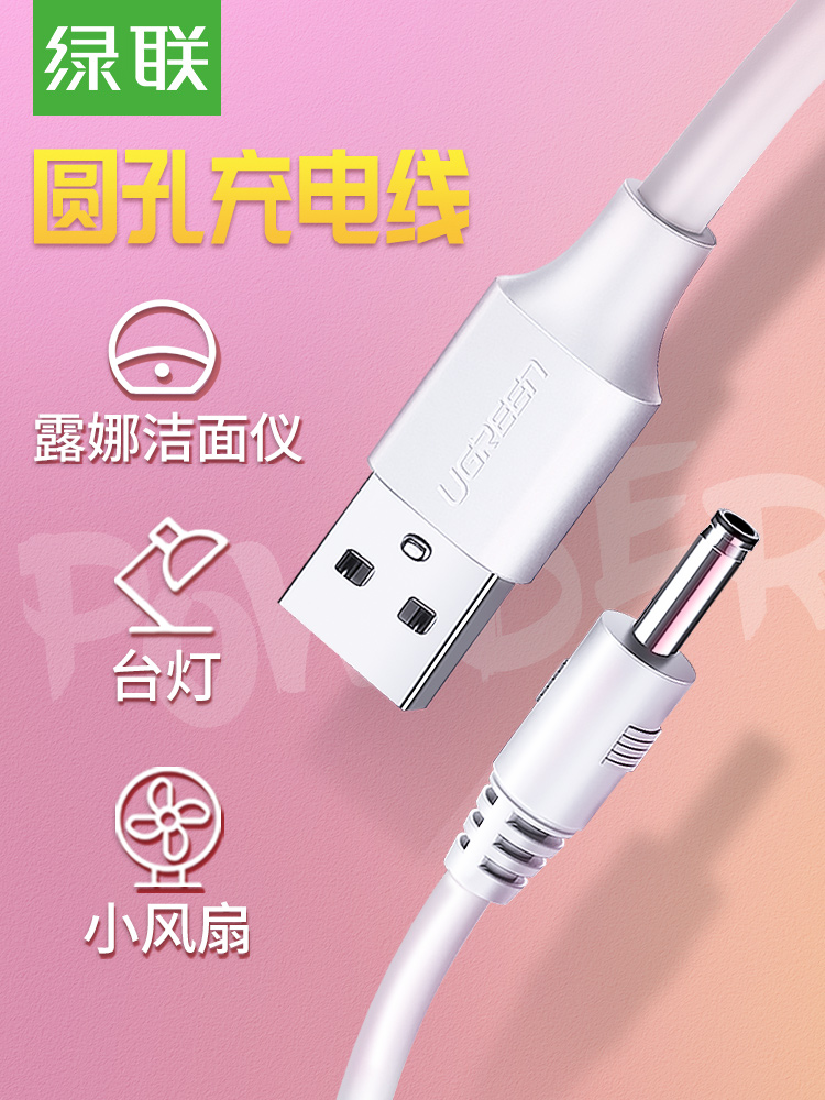 Green Union round hole charging wire machine 3 5mm round head powered table lamp sound box small fan cleaning surface instrument usb turn DC5v