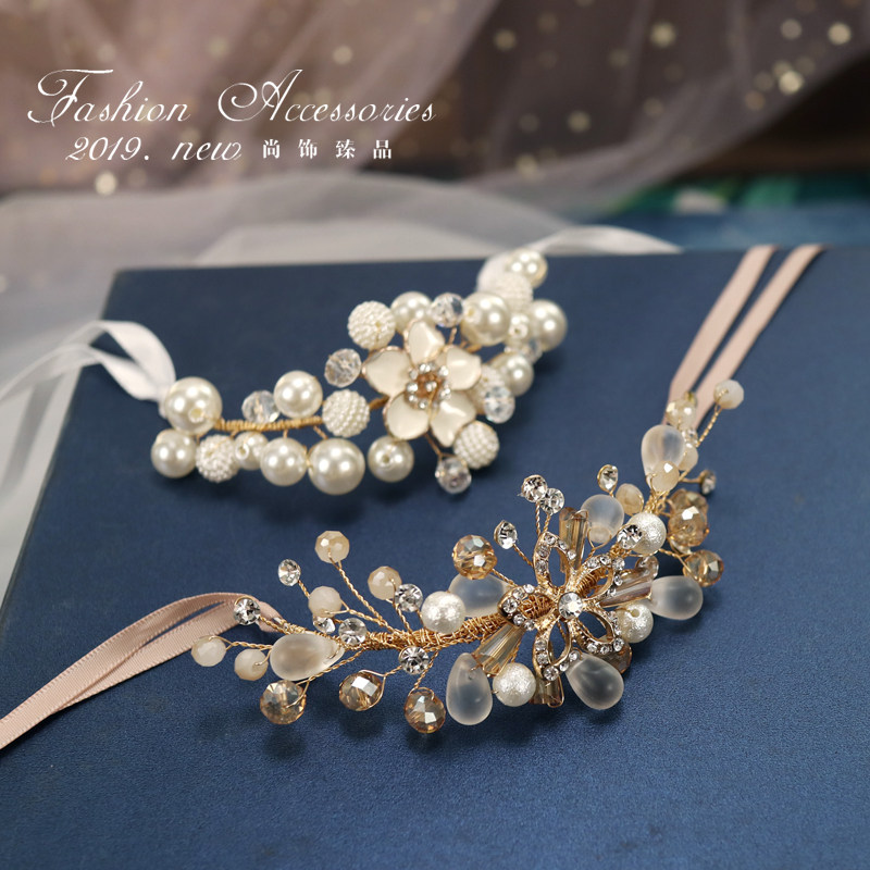 Bride wedding hand flower bridesmaid wrist flower gold white imitation pearl children's show stage catwalk bracelet