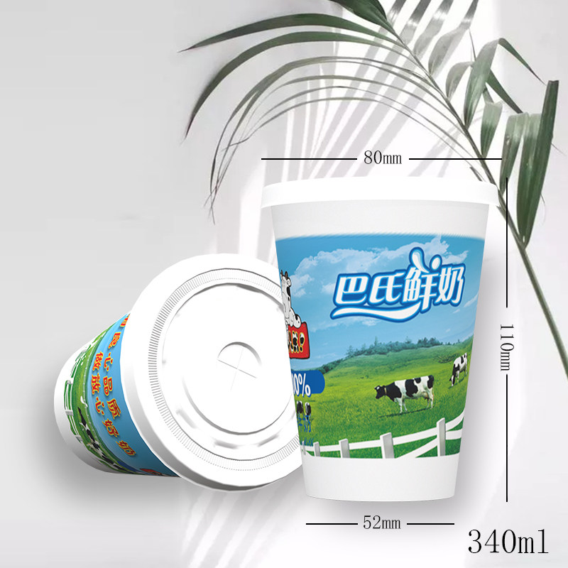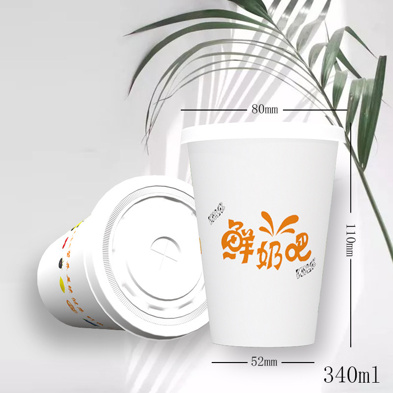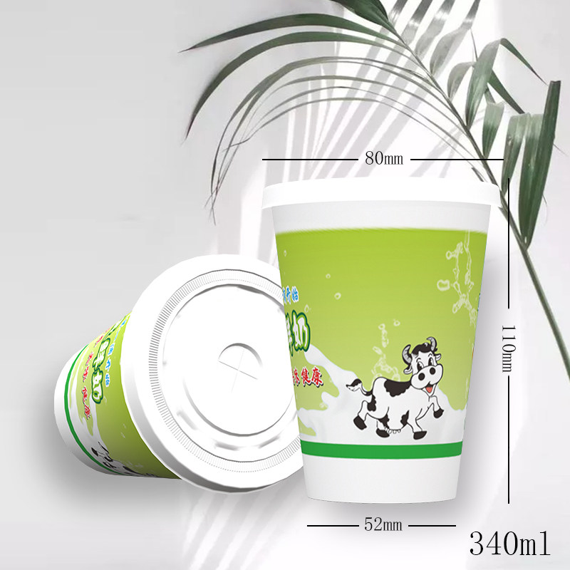 340 ml disposable milk cup with cover food grade packaging can be packed with half a pound of milk blue green