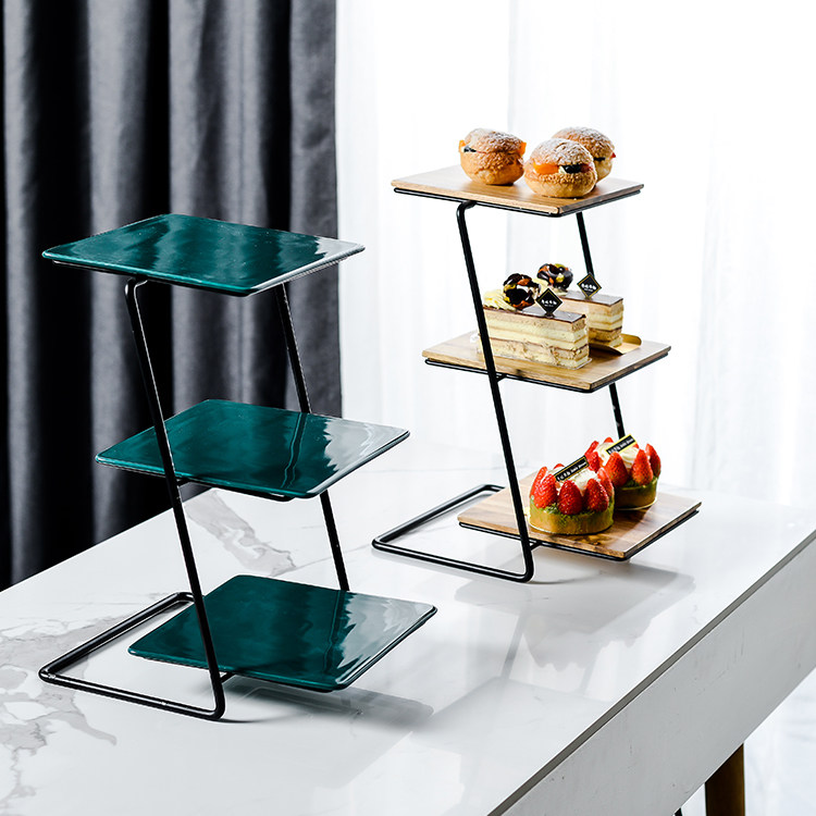Three layers of iron art cake rack Lower afternoon tea refreshment rack fruit pan cake tray sweet taster Wedding Birthday Decorations