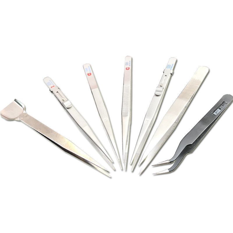 A section with spade tweezers B General tweezers C with lock no groove D Lock without lock slot E with lock with groove F without lock with groove G section black bending mouth tweezers H with black straight mouth tweezers