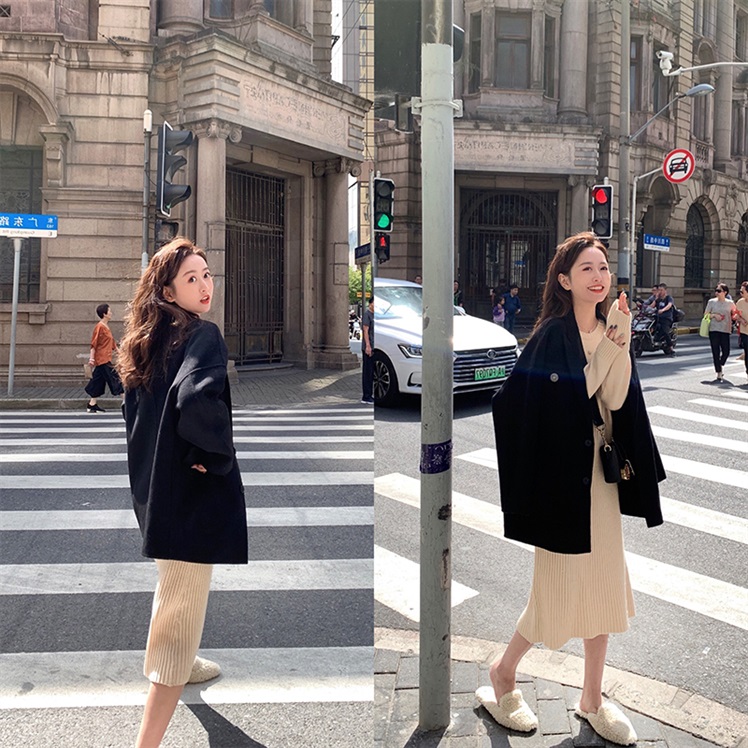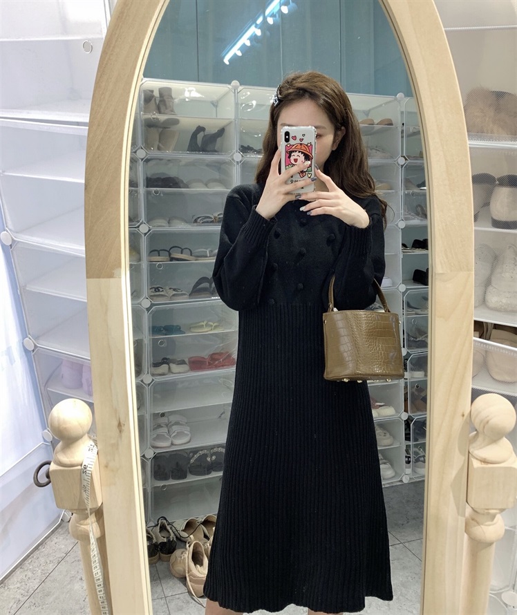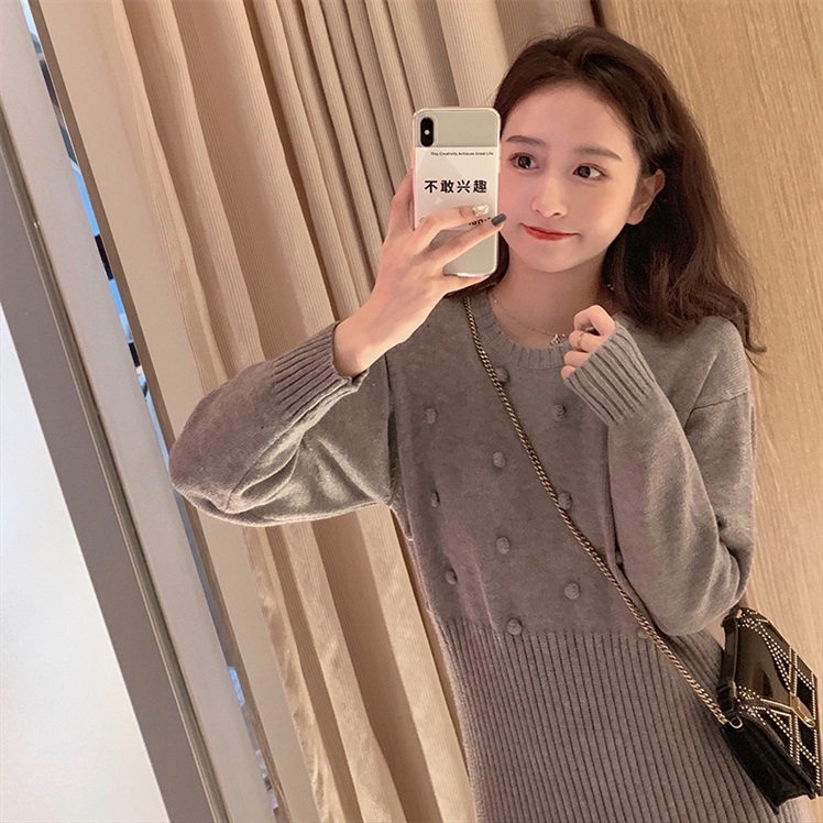 2022 Autumn Winter New Knit Inside a long version of the long sleeve temperament A long version of a knee sweater dress