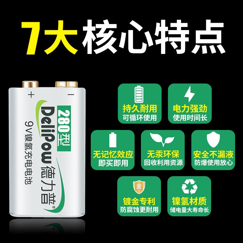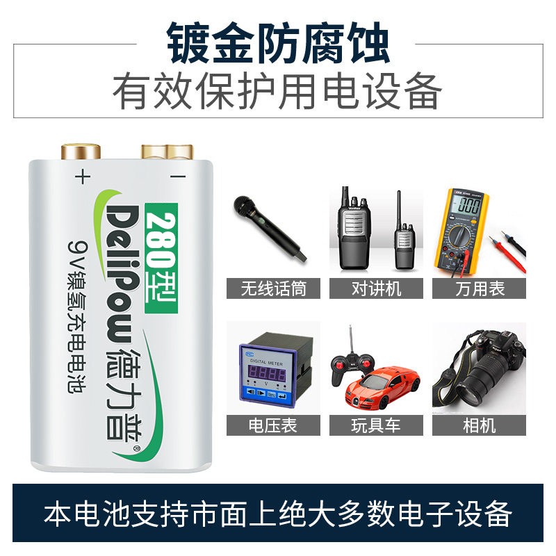 Delip 9v rechargeable battery large-capacity usb multimeter guitar 6f22 microphone square-shaped nine-volt lithium battery