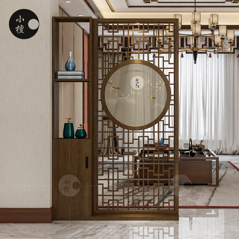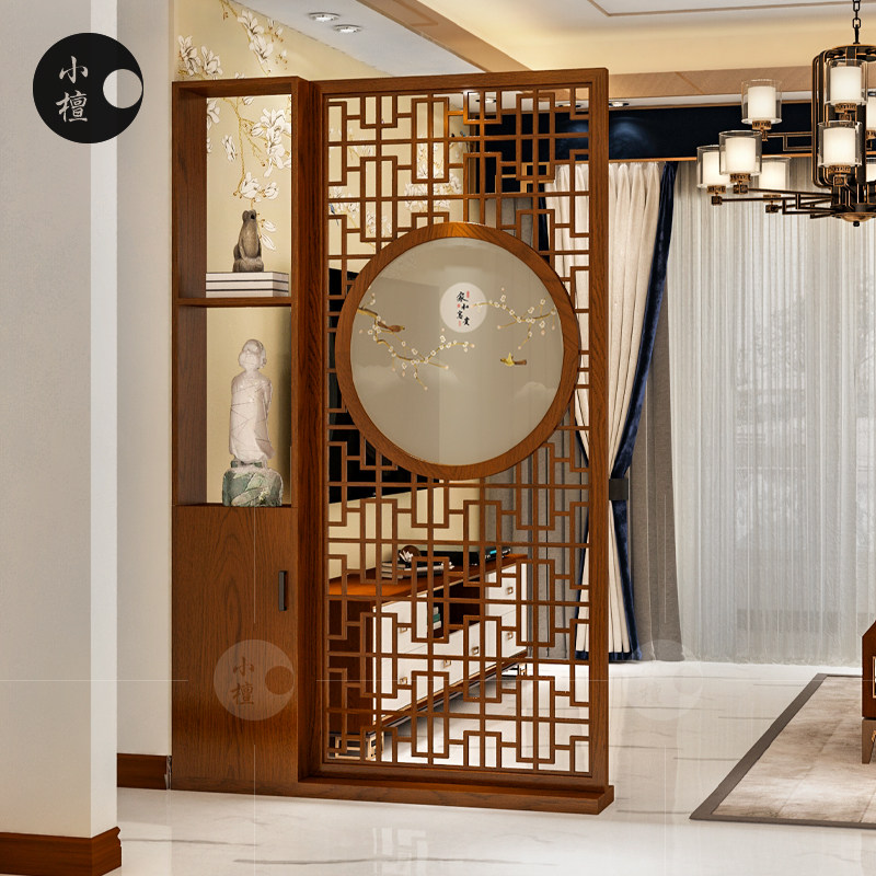 Chinese style screen partition Living room Solid wood hollow decoration partition shelf New Chinese style entrance movable screen cabinet