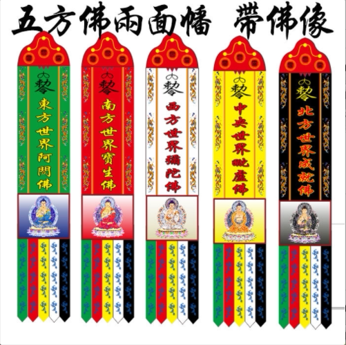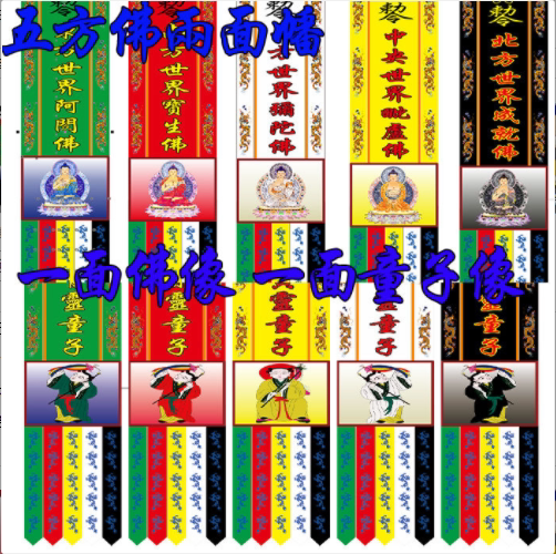 Five-sided Buddha statue double-sided banner Five-sided boy statue double-sided fan Five-sided Buddha statue