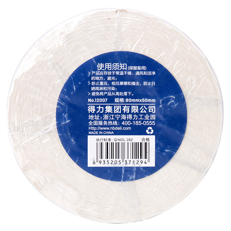 Deli 80*50mm three-proof thermal label electronic surface single self-adhesive printing paper 960 sheets*1 roll 12007